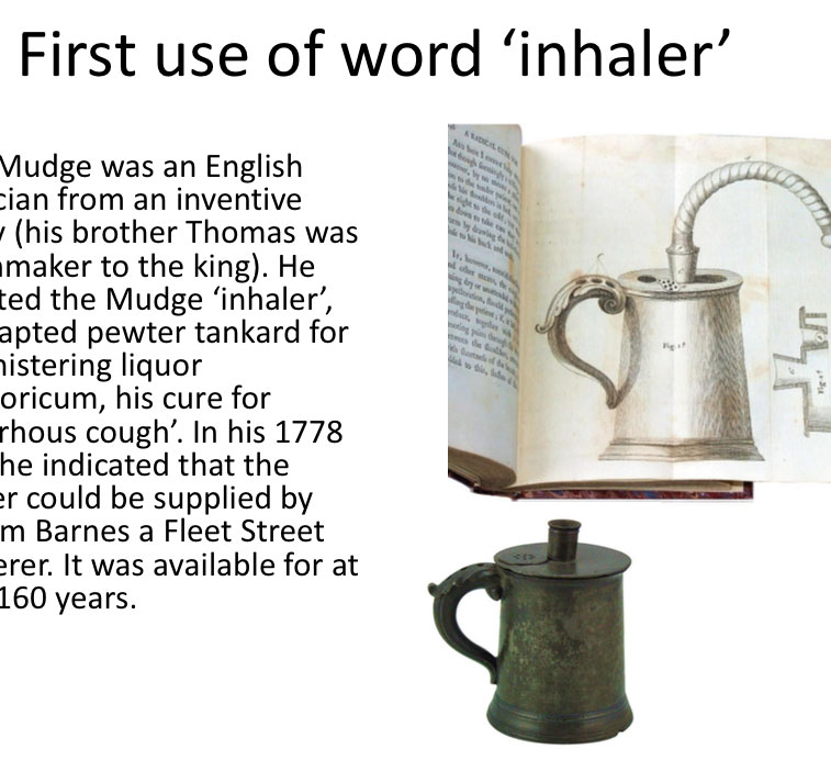Key Steps in Inhaler History – 20 illustrated Powerpoint lecture slides (early times to 1970s)
