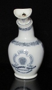 The first image is a Maw’s double valved inhaler. It is shown in Maw’s catalogue of 1869. The second image below is of Maw’s valved inhaler, understood to date from the 1880’s. The mouthpieces differ in shape. In both cases the mouthpiece has a valve allowing air to enter the inhaler. It is not uncommon, these days, to find examples where the original mouthpiece has been replaced. The S. Maw & Son name was changed in 1870 Maw’s and the business became known as S. Maw, Son & Thompson until around 1900 when it became known as S.Maw, Son & Sons – some surviving examples have bodies by Maw, Son & Thompson and mouthpieces from Maw, Son & Sons.