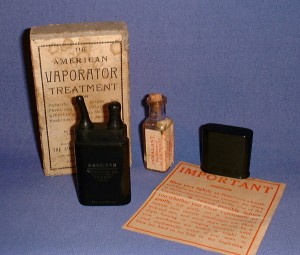 The American vaporator, from Chicago, is a compact vapour inhaler for the treatment of catarrh, colds, asthma and hay fever.