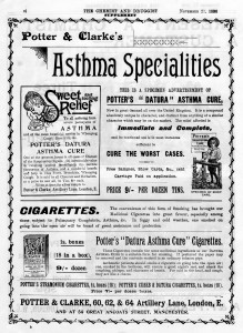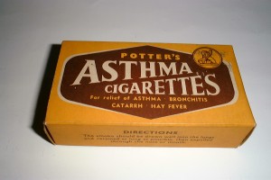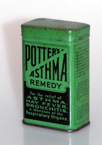 Potter’s Patent Inhaler was a funnel device for inhaling the fumes of combustible asthma powders.